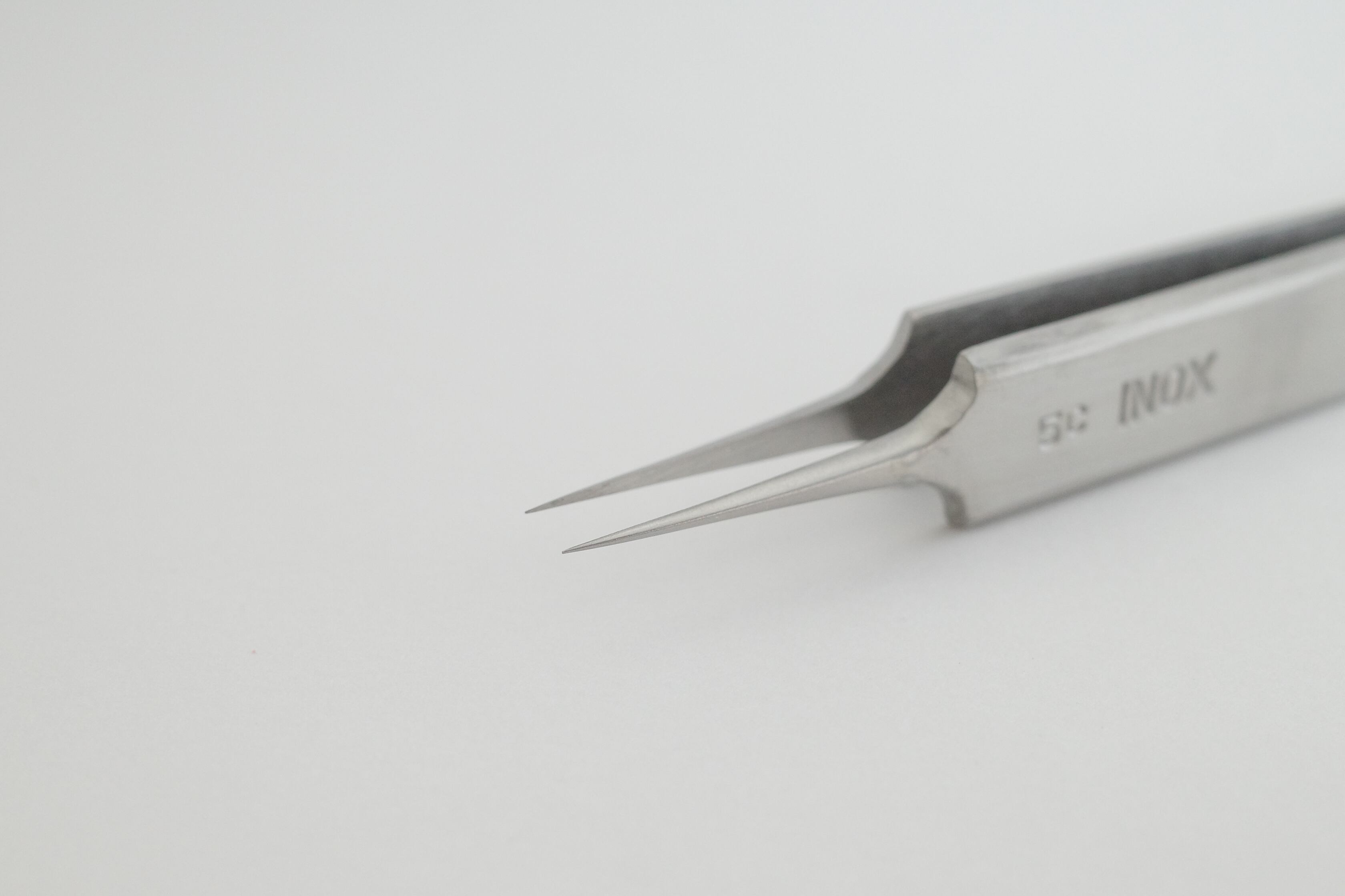 超精密ピンセット 全長:100mm 材質:INOX MADE IN SWISS ◆INOX製(ステンレス) 耐腐食性・耐酸性で高度700VC又は60RCで先端の耐久性が優れている。 耐熱温度300℃。